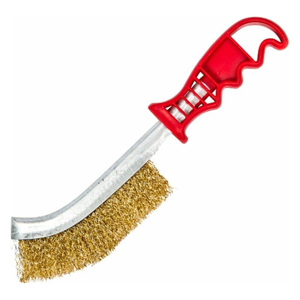 Применяется для очистки деревянных, металлических и других поверхностей от старых лакокрасочных покрытий, ржавчины, налета и других загрязнений. Материал проволоки: латунированная сталь; Тип проволоки: витая; Материал ручки: пластик; Количество рядов: 1.