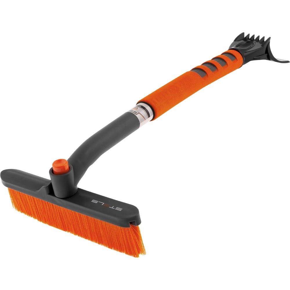 Щетка-сметка для снега со скребком Stels 55305 длиной 62 см, с поворотной головой, предназначена для чистки автомобиля после снегопада. Длина рабочей части составляет 23,5 см. Распушенная на кончиках щетина не царапает поверхность кузова. Щетка-скребок пригодится автолюбителям.Преимущества Долговечность — щетка из морозоустойчивого пластика и алюминиевого сплава сохраняет рабочие свойства при температуре до -40 ℃. Высокая эффективность — скребок шириной 9,5 см быстро снимает толстый слой наледи со стекол, вращающаяся голова облегчает очистку узких и труднодоступных мест (доступна фиксация в одном из 2 положений). Эргономичность — за счет мягкой неопреновой накладки щетку удобно держать в руке даже в сильные морозы.