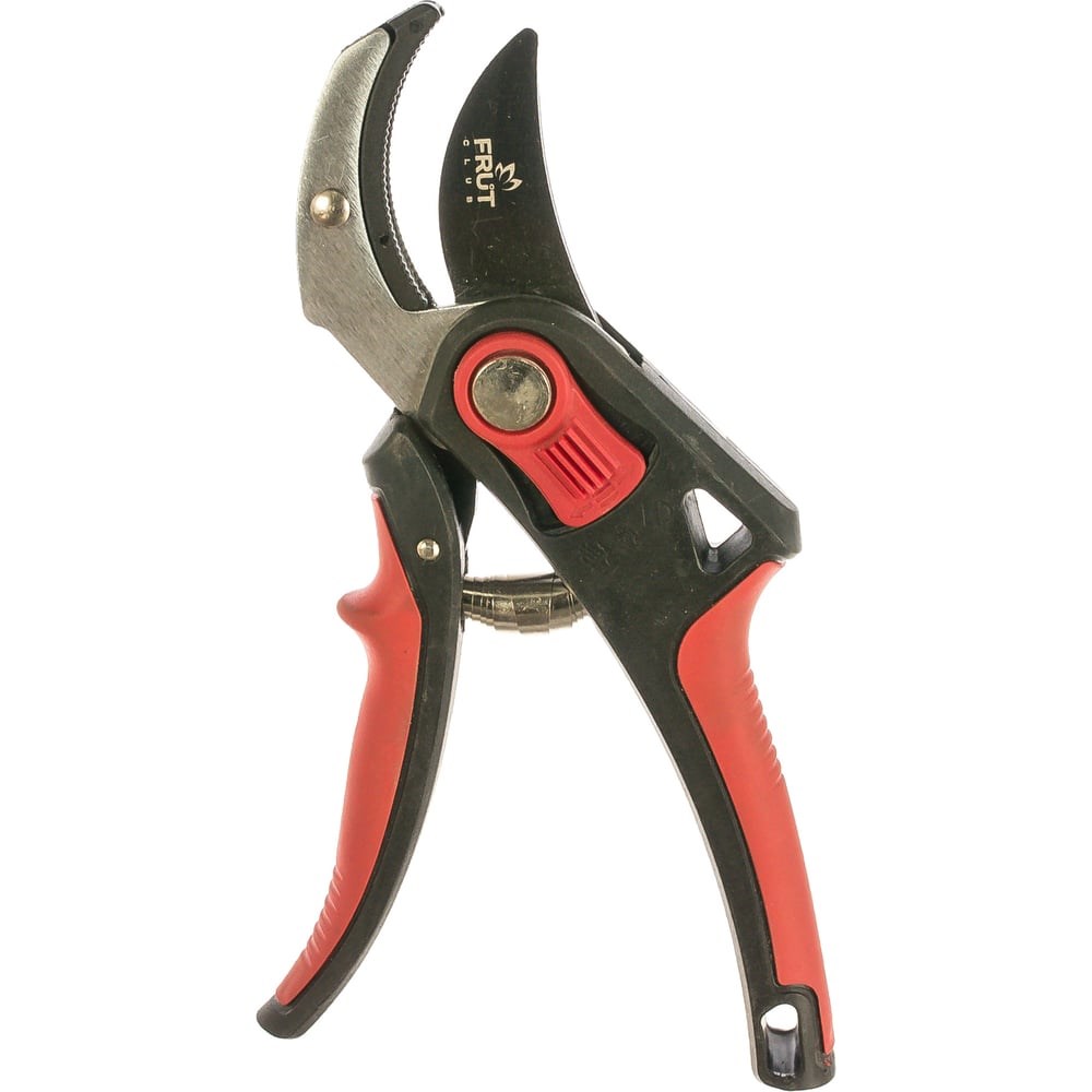 Секатор садовый профессиональный FRUT Club оснащен регулировкой раскрытия, что позволяет работать одним инструментом как с тонкими побегами, так и с толстыми ветвями. Также, данный секатор дополнительно оснащен наковаленкой с зубчатой кромкой, которая надежно фиксирует сухие ветви. Остро заточенное лезвие из прочной стали 65MN длительное время сохраняет режущие способности. Дополнительно на лезвие нанесено ифлоновое покрытие предотвращающее налипание древесины, обеспечивающее защиту от засечек и царапин. Лезвие длительное время остается острым и обеспечивает аккуратный рез, не повреждающий растение. Пружина закрытого типа защищает механизм от механического повреждения, попадания веток и грязи, выпадения пружины. Благодаря рукояткам эргономичной формы секатор удобно лежит в руке. Прорезиненные рукоятки обеспечивают надежный хват и комфортную работу, а также не скользят. Фиксатор под большим пальцем позволяет быстро и легко закрыть секатор и обеспечивает безопасность секатора в закрытом положении. Характеристики: Максимальный диаметр ветви (мм): 20; Длина (мм): 200 (8"); Регулировка раскрытия; Материал лезвия: высокоуглеродистой стали 65Mn + 50С; Твердость стали (HRC): 52-54; Дополнительное покрытие от налипания древесины, царапин и засечек; Удобные прорезиненные рукоятки; Наковаленка для фиксации сухих ветвей;