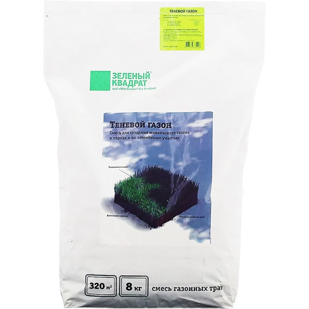 Зеленый Квадрат ТЕНЕВОЙ - смесь для создания живописного газона в парках и на затененных участках.Вес - 8 кг, площадь посева - 320 м2.- Теневыносливый - Вытесняет сорняки - Образует плотный дернСостав:Овсяница красная красная 15% Тимофеевка луговая 35% Райграс многолетний 20% Мятлик луговой 5% Райграс итальянский 20% Овсяница красная волосовидная 5%Рекомендуемый срок реализации: 2 года В течение двух лет семена не утрачивают потребительские качества, в дальнейшем всхожесть снижается на 1-2% в год, соответствует ГОСТ Р 52325-2005