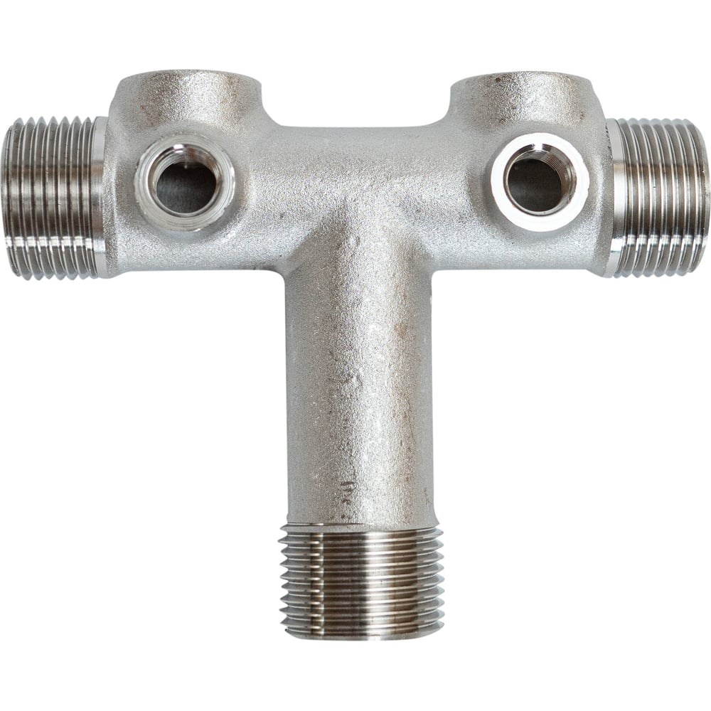 Переходник семиходовой F-02 (штуцер) LadAna 100603032 используется в системах водоснабжения для подключения автоматики управления и приборов визуального контроля.Материал исполнения: медный сплавH=115 mmL=141 mmДанный переходник очень удобен в использовании, так как позволяет одновременно присоединить (реле давления, манометр, коллектор для холодной и горячей воды, ввести греющий кабель). При этом остается два резьбовых отверстия 1" НР для подсоединения ввода холодной воды и отвод для расширительного бака. Примечание: Все наружные резьбы 1" на 7-ми ходовом переходнике имеют также внутреннюю резьбу 3/4.
