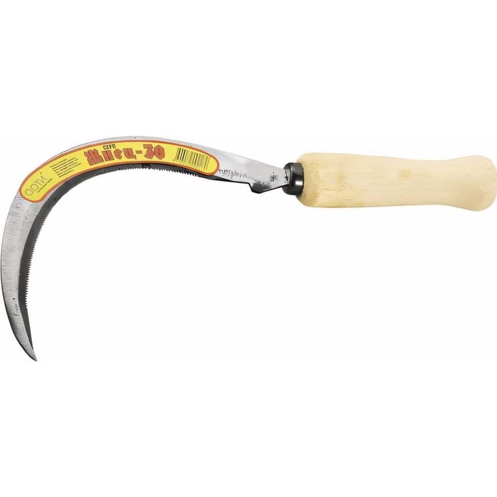 Серп с зубчатым полотном Без бренда «Жнец - 30» 64102, ширина захвата 170 мм, рассчитан на срезание злаковых культур. Рабочее полотно оснащено зубцами для повышения эффективности реза, поэтому серп легко справляется с жесткими и сухими стеблями.