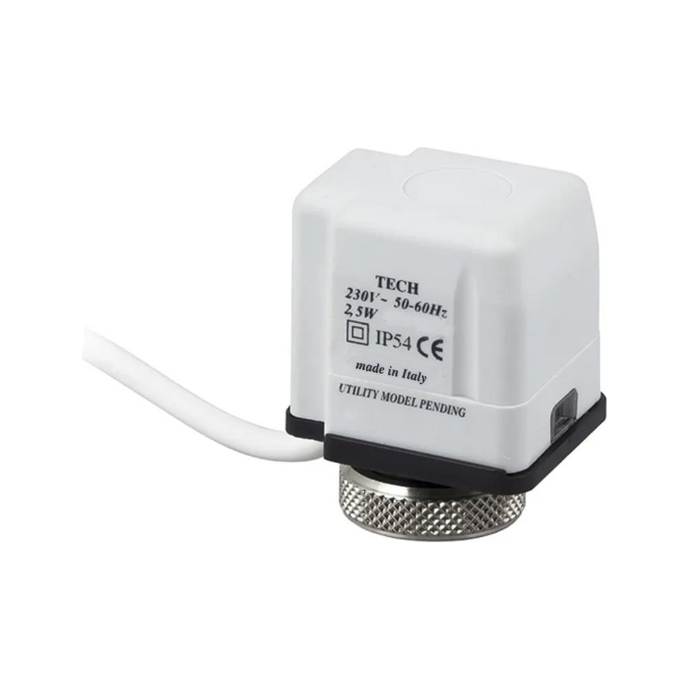 Сервопривод SR Rubinetterie 230В нормально открытый 0092-230A0000 для термостатических клапанов и коллекторных групп. Дополнительные характеристики: Ход штока - 3,6 мм + 0,4. Степень загрязнения - 2. Напряжение питания - 230 V. Частота - 50 - 60 Hz. Потребляемая мощность - 2,5 W. Первоначальный пик - 0,20х0,5 с (230V). Начальное время открытия или закрытия (напряжение On) 230 V - 80 сек. Конечное время открытия или закрытия (напряжение On) 230 V - 3 мин. Уровень защиты- 54. Класс защиты - II. Кабель питания - тип H05V2V2-F. Предел температуры окружающей среды при работе: -5°C - +50°C. Предельная температура при хранении: -20°C - +65°C. Максимальная термочувствительность клапана: -5°C - +100°C. Развиваемое усилие на штоке (питание OFF) (Нормально открытый) - 90 N. Материал корпуса привода - самозатухающий VO.