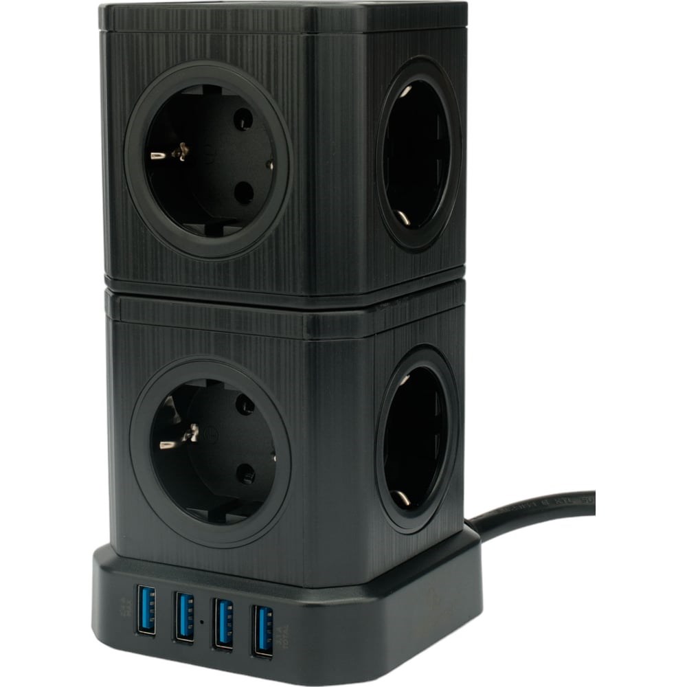 Сетевой фильтр гибкий для защиты подключенных устройств от возникающих в электросети импульсных помех, короткого замыкания и перегрузок. Технические характеристики: 9 заземленных розеток. USB: 4Type-A. Автоматический предохранитель на 16 А. Номинальное напряжение – 100-250 В. Суммарная номинальная мощность нагрузки – 4 кВт. Номинальный ток нагрузки – 16 А. Ток помехи, выдерживаемый ограничителем – не менее 2.5 кА. Максимальная поглощаемая энергия – 90 Дж. Габаритные размеры – 135 x 120 x 190 мм. Провод: ПВС 3 х 1,5 мм2.