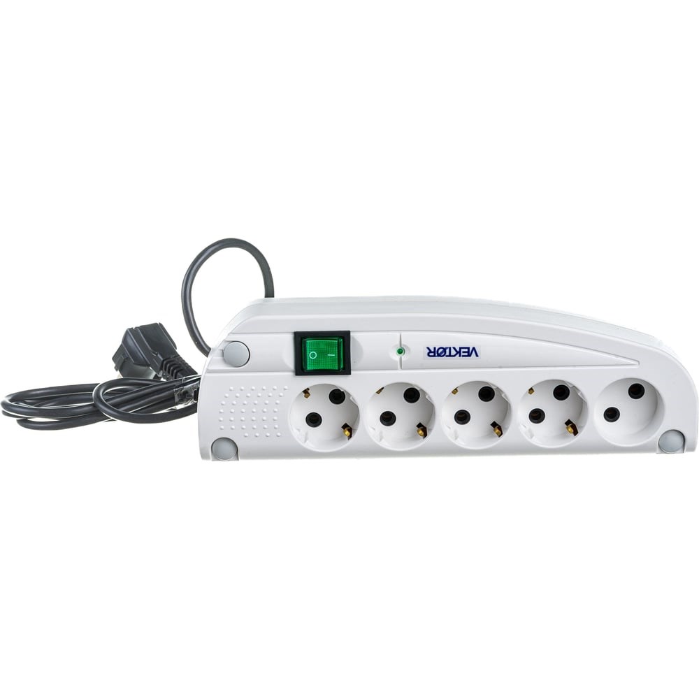 Сетевой фильтр Vektor Z 3.5 кВт (светло-серый, 3м, для бытовой техники, повышенная мощность)подходит для защиты посудомоечных, стиральных машин, мультиварок, свч печей, климатического оборудования и других электроприборов значительной мощности. ПРЕИМУЩЕСТВА: Сетевой фильтр повышенной мощности. Работает под нагрузкой до 16А/3,5 кВт. Высококачественный АБС пластик корпуса Кабель с сечением 3х1 Карболитовый автоматический предохранитель многократного действия на 16А Четыре розетки с заземлением плюс 1 универсальная Световой индикатор исправности электронного блока защиты Система крепления к поверхности