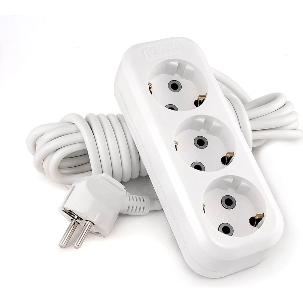 Трехместный сетевой удлинитель с заземлением LUX У3-Е, 2м, 4606400414636 рекомендован для бытового использования, в частности в жилом доме или офисном помещении и применяется в для  присоединения к розетке удаленных от нее электроприборов. Благодаря наличию заземляющих контактов, подключенные приборы защищены от скачков напряжения в сети. Удлинитель оборудован проводом ПВС, состоящим из скрученных между собой медных жил малого и среднего сечения с изоляцией, снаружи защищенной оболочкой из ПВХ. Вилка подходит для работы с различными типами розеток.
