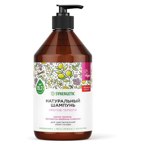 Шампунь 750 мл, SYNERGETIC "Против перхоти", для чувствительной кожи головы, бессульфатный, 701757