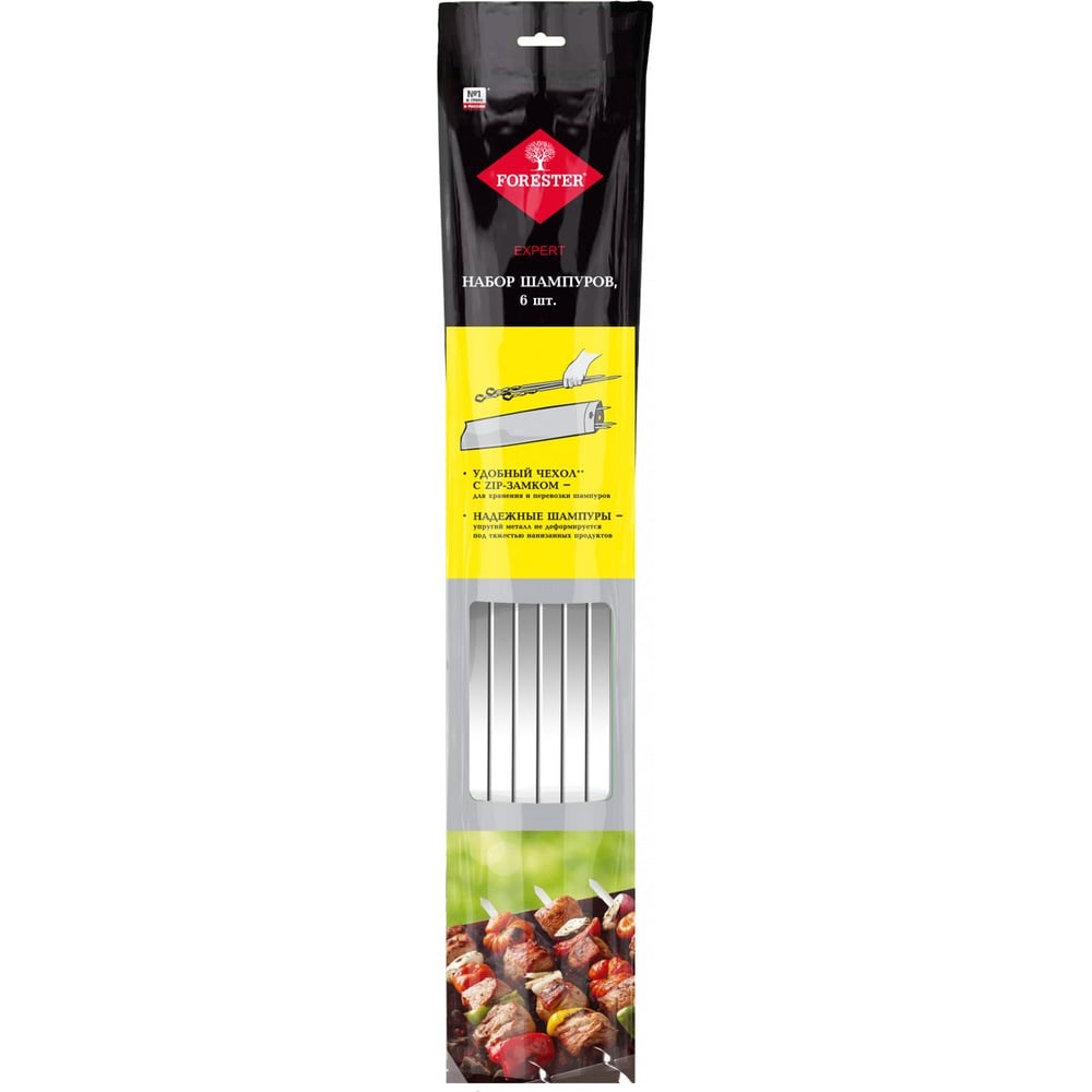 Набор больших шампуров (6 шт) FORESTER RZ-600SB выполнен из стали с антикоррозийным покрытием для надежности и долговечности использования. Предусмотрена удобная ручка-винт, надежно фиксирующая шампур на мангале. Длина шампуров составляет 55 см. Многоразовый блистер обеспечивает удобство транспортировки и хранения шампуров.