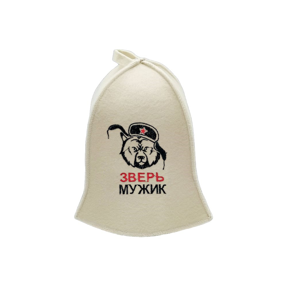 Шапка для бани Бацькина баня Мужик зверь 10042 - главный атрибут при походах в баню и сауну. Аксессуар из фетра поможет защитить вашу голову от перегрева. Шапка замечательно впитывает влагу и не садится после сушки, все это обеспечивает максимальный комфорт и удовольствие от отдыха в традиционной русской бане или финской сауне.