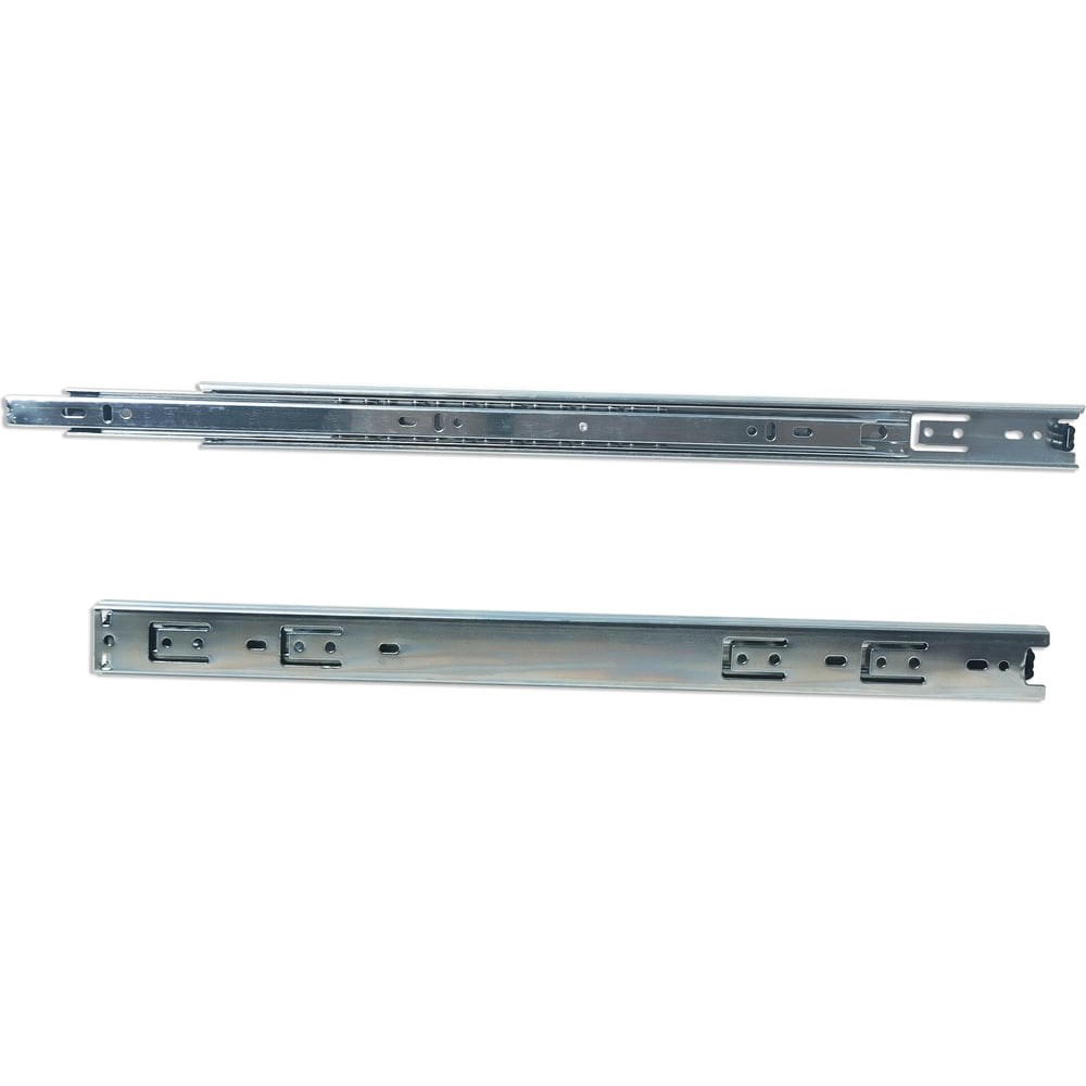 Шариковые направляющие для ящиков полного выдвижения 35/450Российский брендТелескопические мебельные направляющие с шариковым механизмомПлавное и бесшумное скольжениеПредназначены для бокового крепления на выдвижных элементахБыстросъемный механизмПолное выдвижениеИзготовлены из стали, устойчивой к деформации и износу, с оцинкованным покрытием для защиты от коррозии позволяет использовать в ванных комнатахМаксимальная нагрузка на комплект: 15 кгМонтажная длина: 450ммШирина полозьев/рельсов: 35 ммМонтажная толщина: 11 мм ± 0.2 ммИдеальная мебельная фурнитура для кухонных шкафов, комодов, выдвижных ящиков и выдвижных систем Качество продукции подтверждено сертификатом соответствия РОСС RU З2001.04ИБФ1.ОСП28.53772