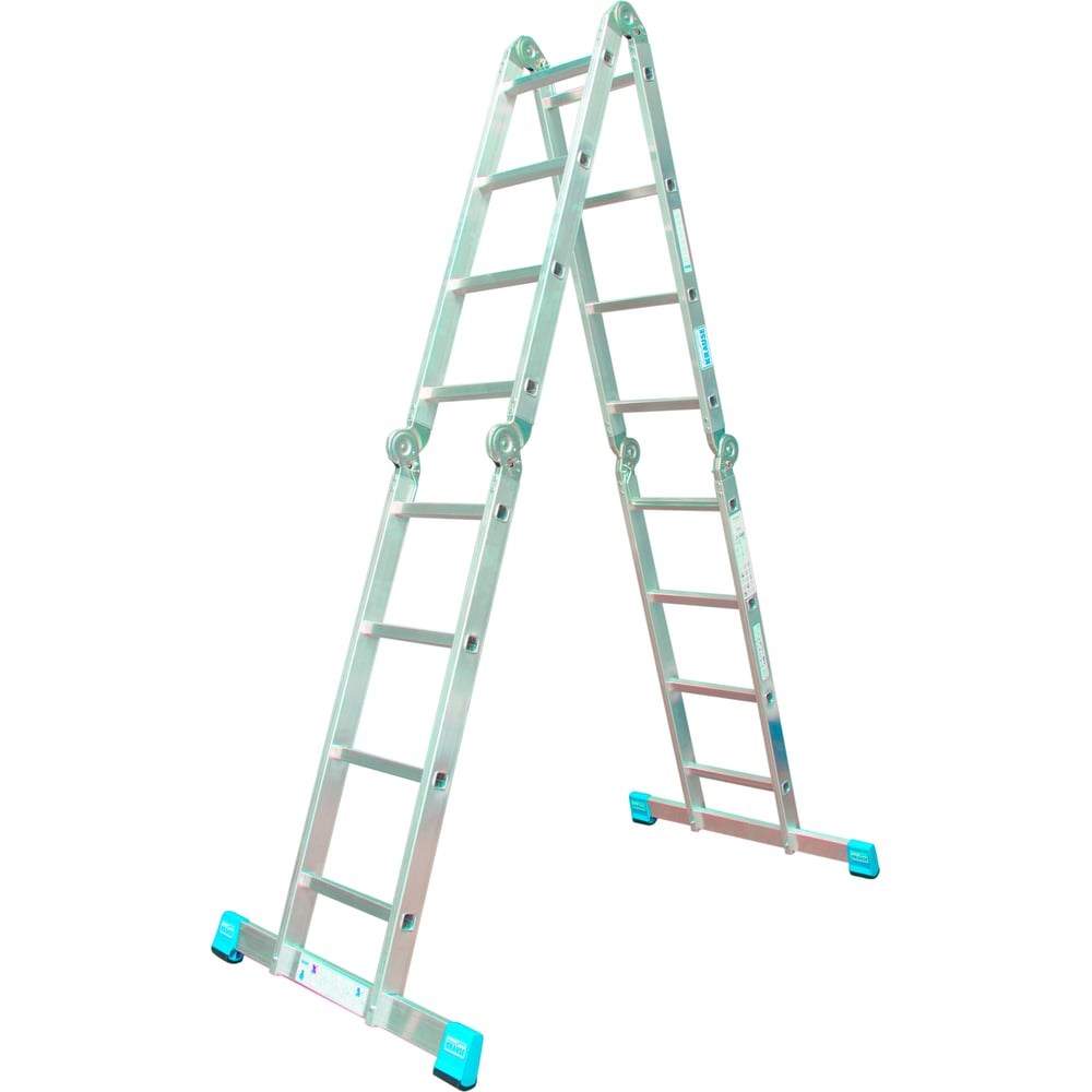 Универсальная шарнирная лестница Krause STABILO 4х4 123527 может применяться в трёх вариантах: приставная лестница, двусторонняя стремянка и рабочая платформа. Изделие быстро складывается и легко монтируется в нужную конфигурацию. Конструкция имеет шарнирную систему, в которой оба шарнира приводятся в действие при помощи дужки. Алюминиевый прямоугольный профиль защищен от воздействия коррозии. Запатентованный шарнир. При помощи дуги приводится в действие одной рукой (SpeedMatic-System). Две широкие траверсы с нескользящими наконечниками (SafetyCap). Перекладины сечением 30 х 30 мм с рифленым профилем. Боковины лестницы изготовлены из прессованного профиля, усиленного по краям.Продукт сертифицирован в строгом соответствии с ГОСТ Р 58752-2019