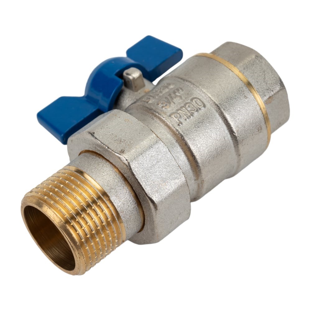 Шаровой кран с американкой RM -L 3/4 никелированный, бабочка Ду20 Ру30 НК 11Б27п1 RML-34FFLA произведен из латуни в соответствии со стандартами ГОСТ. Испытания в НИИ сантехники показали устойчивую работу крана при максимально критических нагрузках: Проверка на максимальное давление 200 бар - без разрушения Проверка на герметичность при температуре 110С и давлении 16 бар в течении 1 часа - без разрушения Сосредоточенной нагрузке на изгиб 178 Нм- без разрушения Краны шаровые RM регулярно используются строительными и комплектующими компаниями для монтажа водопроводной системы.
