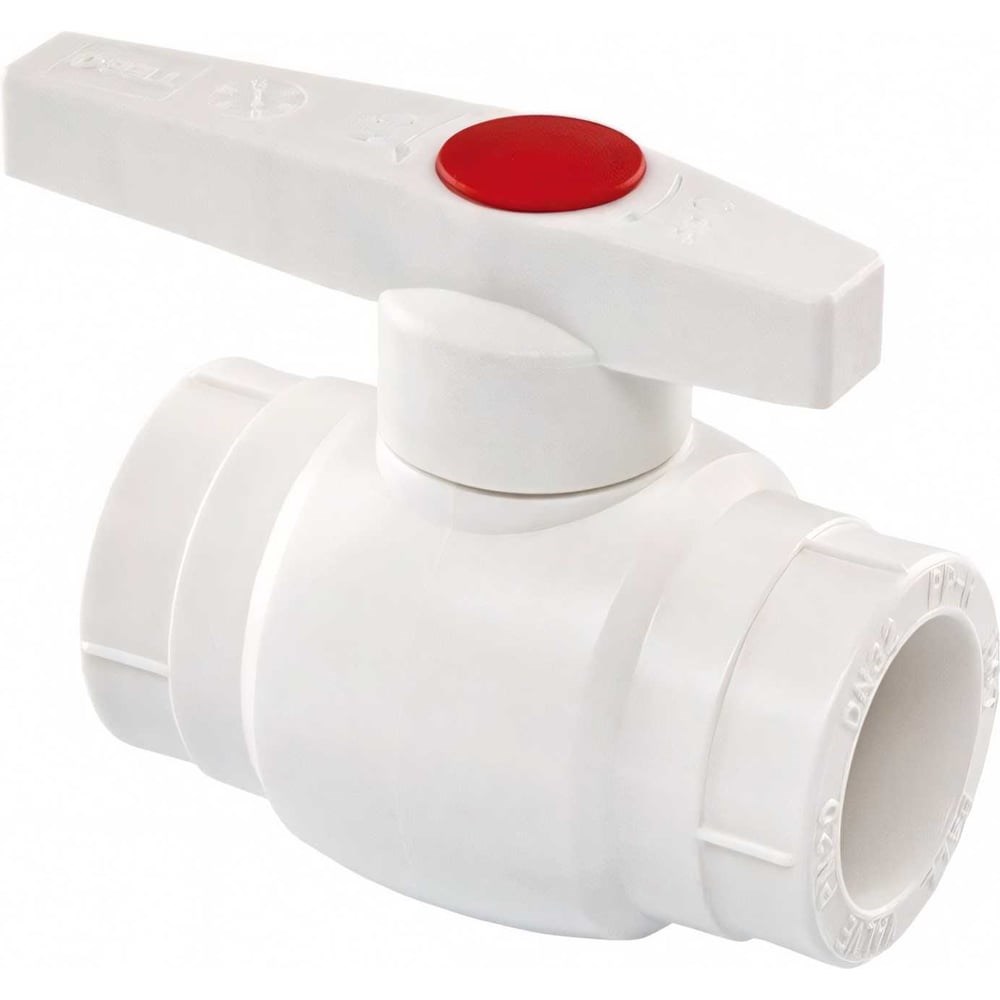 Кран полипропиленовый шаровой TEBO, полнопроходной запорный, предназначен для установки на полипропиленовые трубопроводы для систем водоснабжения и отопления. Кран укомплектован двумя заглушками к ручке: • красного цвета: для идентификации горячего водоснабжения и подающего трубопровода системы отопления; • синего цвета: для идентификации холодного водоснабжения и обратного трубопровода системы отопления. Материал: • Корпус литой – PP-R, тип 3; • Шар (цельноточенный, хромированный) – латунь ЛС58-2; • Уплотнение по штоку – три уплотнительных кольца из EPDM; • Уплотнение по шару – две тефлоновые прокладки. Соответствует требованиям ГОСТ 34292-2017.