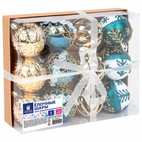 Шары ёлочные 12 шт., 6 см, "Frost Forest", пластик, бирюзовый/золото, ЗОЛОТАЯ СКАЗКА, 592176