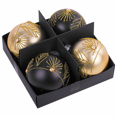 Шары ёлочные 4 шт., 8 см, "Yin-Yang", пластик, цвет: черный/золотистый, ЗОЛОТАЯ СКАЗКА, 591995
