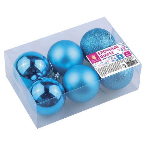 Шары ёлочные 6 шт., 8 см, "Trio", пластик, БИРЮЗОВЫЕ (глянец, матовый, глиттер), ЗОЛОТАЯ СКАЗКА, 590879