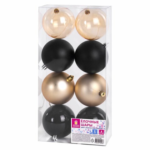 Шары ёлочные 8 шт., 8 см, "Eden Colors", пластик, цвет: золотистый/черный, ЗОЛОТАЯ СКАЗКА, 591983