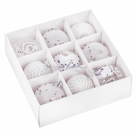 Шары ёлочные 9 шт., 6 см, "Crystal Silence", пластик, цвет: белый/серебристый, ЗОЛОТАЯ СКАЗКА, 591988
