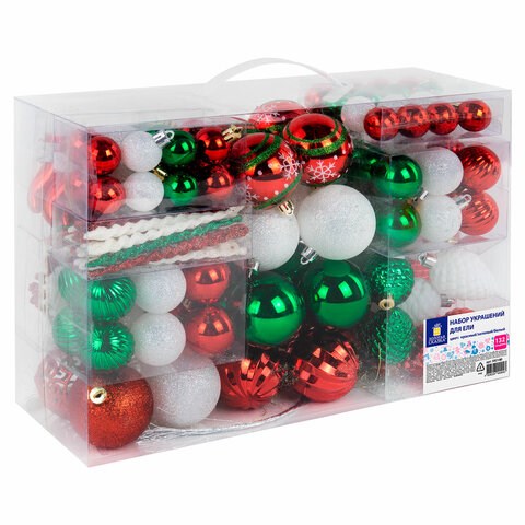 Шары ёлочные НАБОР 132 предмета "Red&Green", красный/зеленый/белый, пластик, ЗОЛОТАЯ СКАЗКА, 592180