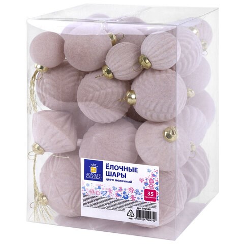 Шары елочные НАБОР 35 предметов "Зефирки", пластик, софт-тач, молочный, ЗОЛОТАЯ СКАЗКА, 592588