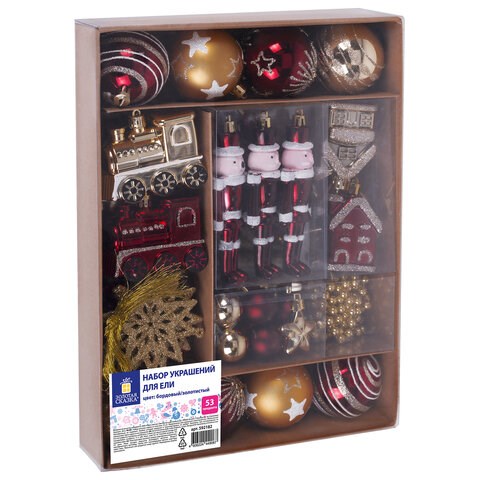Шары ёлочные НАБОР 53 предмета, "Gold Wine", бордовый/золото, пластик, ЗОЛОТАЯ СКАЗКА, 592182