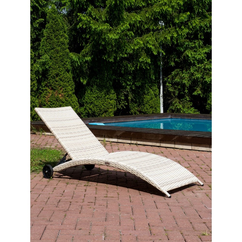 Отдыхайте с комфортом на шезлонге AGATA из искусственного ротанга бежевого цвета! Этот элегантный шезлонг размером 198х64х35 сделает ваш отдых незабываемым. Изготовленный из первоклассного искусственного ротанга, с двойным полукруглым плетением и прочным стальным каркасом, шезлонг AGATA обеспечивает надежность и долговечность. С шезлонгом AGATA вы сможете расслабиться и насладиться солнцем, ведь он выдерживает нагрузку до 120 кг. Колесики делают использование шезлонга еще более удобным и практичным. Шезлонг AGATA идеально сочетается с комплектами мебели ZOYA, ZORRO, KARL в бежевом цвете, создавая стильный и уютный интерьер.