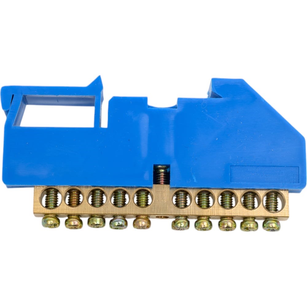 Шина N ноль на DIN-изоляторе ЭРА NO-222-46 ШНИ-6х9-10-Д-синий, Б0033427 предназначена для электрического и механического соединения нулевых, защитных и фазных проводников. Выполнена из высококачественной латуни, установленной на пластиковый изолятор.