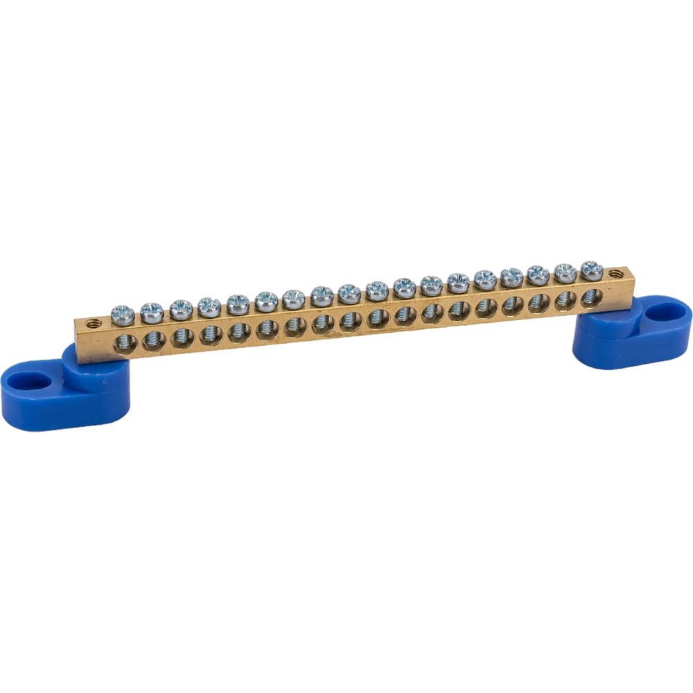 Шина N ноль на двух угловых изоляторах ЭРА NO-222-61 ШНИ-6х9-18-У2-синий Б0033379 предназначена для электрического и механического соединения нулевых, защитных и фазных проводников. Выполнена из высококачественной латуни, установленной на пластиковые изоляторы.