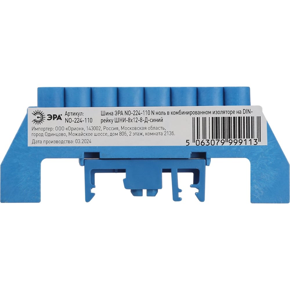 Нулевые шины N предназначены для электрического и механического соединения нулевых проводников. Является проводником, который служит для возврата к источнику остатка напряжения в стандартном случае или выравнивания потенциала в трёхфазной сети. Изделие выполнено из латунной шины сечением 8×12 мм установленной в пластиковый комбинированный изолятор синего цвета.
