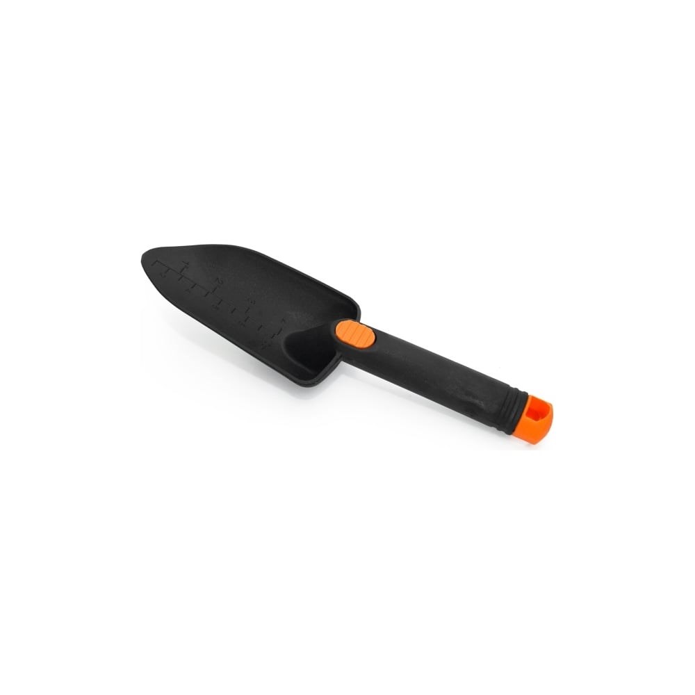 Широкий посадочный совок POLYAGRO пластик 7661201 - удобный инструмент для садовых работ, особенно для посадки и пересаживания растений. Изделие имеет небольшой вес, но при этом отличается прочностью. Для удобства пользователя на рабочую часть нанесена измерительная шкала, которая позволяет соблюдать нужную глубину при посадке. Лопатка изготовлена из пластика, не подверженного коррозии, и отличается износоустойчивостью.