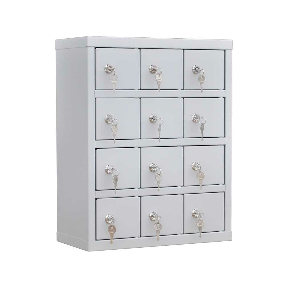 Шкаф для хранения мобильных телефонов.Габаритные размеры:Высота: 504 ммШирина: 395 ммГлубина: 200 ммПоставляется в собранном виде (цельносварная конструкция).Ящик на 12-ть телефонов, отдельно закрывающимся дверцами, подойдет в школе, на работе, в офисе, на производстве и так далее, рассчитан на двенадцать отделений.На ящике с ячейками для телефонов врезной замок. У каждого шкафчика свой комплект замка и двух ключей. Ключи и замок пронумерованы, чтобы понять какому замку соответствует какой ключ.Ячейки для хранения сотовых / мобильных телефонов имеют достаточный размер, чтобы поместить современный смартфон любого размера.Внутренние размеры одного отделенияГлубина: 180 ммШирина: 85 ммВысота: 100 мм.Ячейки шкафа для телефонов имеют прочную конструкцию. Конструкция цельносварная.Сам ящик для сотовых телефонов выполнен из стали. Двенадцать запираемых ячеек. На задней стенке шкафа имеется 4 отверстия d 6.5мм для крепления шкафа к стене. Крепление шкафа к стене обязательно. Вид поставки собранный.Окрашен порошковой краской светло-серого цвета, RAL 7035.Отличное решение для хранения мобильных телефонов на работе, школе, офисе, в любом месте, где надо сдать или оставить на сохранение мобильный телефон. Подойдет для хранения различного мелкого товара (наушники, зарядные устройства, USB-кабели и многое другое). Если вы искали органайзер, ящик, шкаф, мини сейф, то возможно вас заинтересует данный товар - металлический шкаф для хранения мобильных телефонов.