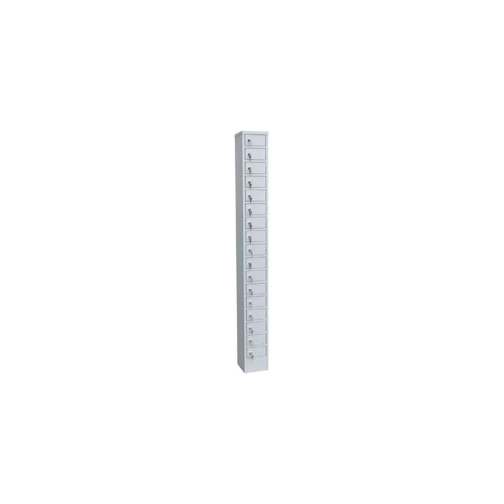 Габаритные размеры:Высота: 1850 ммШирина: 200 ммГлубина: 200 ммПоставляется в собранном виде (цельносварная конструкция).Ящик на 17 телефонов, отдельно закрывающимися дверцами, подойдет в школе, на работе, в офисе, на производстве и так далее, рассчитан на семнадцать отделений.Семнадцать запираемых ячеек. На ящике с ячейками для телефонов врезной замок. У каждого шкафчика свой комплект замка и двух ключей. Ключи и замок пронумерованы, чтобы понять какому замку соответствует какой ключ.Ячейки для хранения сотовых / мобильных телефонов имеют достаточный размер, чтобы поместить современный смартфон любого размера.Внутренние размеры одного отделенияГлубина: 180 ммШирина: 130 ммВысота: 80 ммЯчейки шкафа для телефонов имеют прочную конструкцию.Сам ящик для сотовых телефонов выполнен из стали. Семнадцать запираемых ячеек. На боковых и задней стенках шкафа имеется по 2 отверстия d6.5мм для возможности соединения шкафов между собой и крепления шкафа к стене. Крепление шкафа к стене обязательно! Вид поставки собранный.Окрашен порошковой краской светло-серого цвета, RAL 7035.Отличное решение для хранения мобильных телефонов на работе, школе, офисе, в любом месте, где надо сдать или оставить на сохранение мобильный телефон. Подойдет для мелкого товара (наушники, зарядные устройства, USB-кабели и многое другое). Если вы искали органайзер, ящик, шкаф, мини сейф, то возможно вас заинтересует данный товар - металлический шкаф для хранения мобильных телефонов