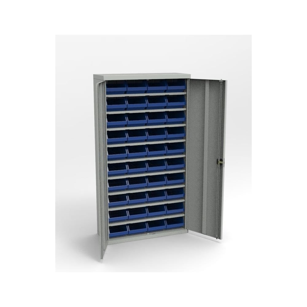 Шкаф для метизов Святогор ЗС-Д-5003.40 используется для хранения различного инструмента. Поставляется в комплекте с 40 пластиковыми ящиками, что позволяет разместить много мелкой фурнитуры. Большая высота шкафа обеспечивает хорошую вместимость для различного инструмента. Надежный ключевой замок работает на основе ригельной системы, поэтому шкаф легко запирать и отпирать.