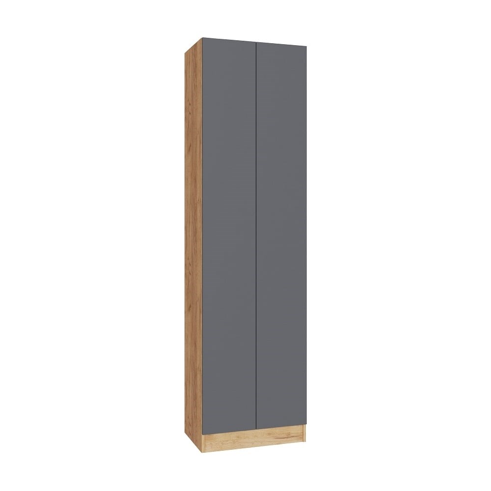 Шкаф для одежды Руэлла с выдвижной штангой - лаконичный предмет мебели, который позволит хранить верхнюю одежду и добавит комфорт в обстановку прихожей. Особенности корпус ЛДСП, дуб крафт золотой фасад ЛДСП, графит серый отсутствие лицевой фурнитуры комплектуется накладными петлями (прямыми) механизм открывания Push-to-Open