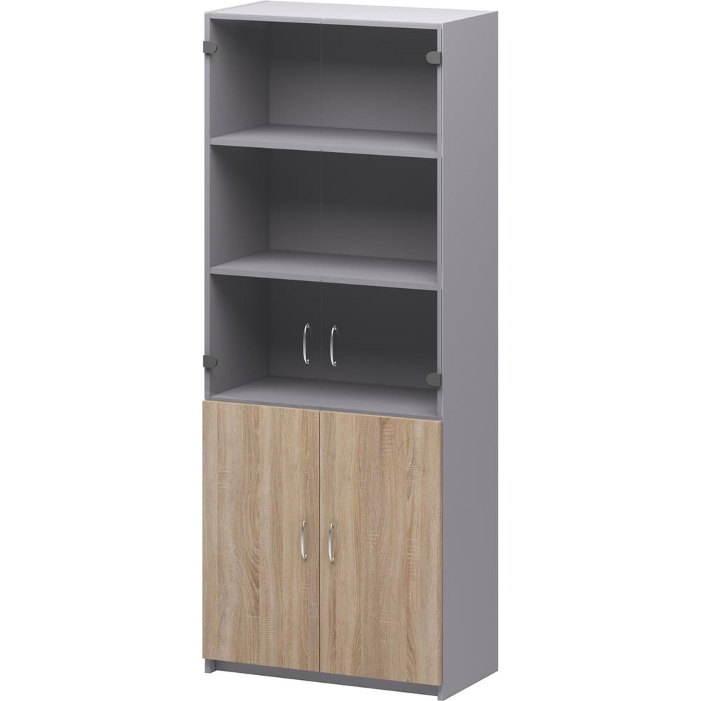 Шкаф со стеклом Комфорт-Питер Бюджет 2553 402651, 402879, 402655, 402670, 096 Дуб Сонома, серый 2553 предназначен для хранения различных предметов. Выполнен из ЛДСП, поэтому легко чистится и не требует сложного ухода. Благодаря высокой прочности прослужит долгое время. Современный дизайн шкафа впишется в любой интерьер.