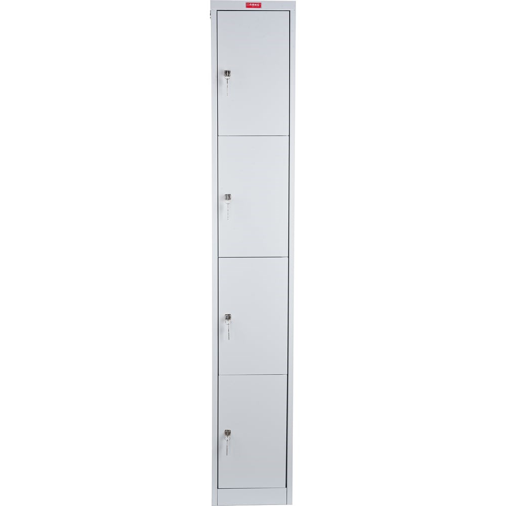 Шкаф ПАКС ШРМ-14 34395 разделен на четыре секции. Модель можно установить в единичном экземпляре либо сформировать ряд шкафов. Преимущество изделия заключается в наличии жесткой конструкции, которая не деформируется даже при значительной нагрузке. Каждая ячейка комплектуется индивидуальным врезным замком. Шкаф используется в раздевалках, магазинах и других местах, где необходимо оставить сменную одежду, сумку или личные вещи. Небольшой собственный вес конструкции упрощает установку изделия.