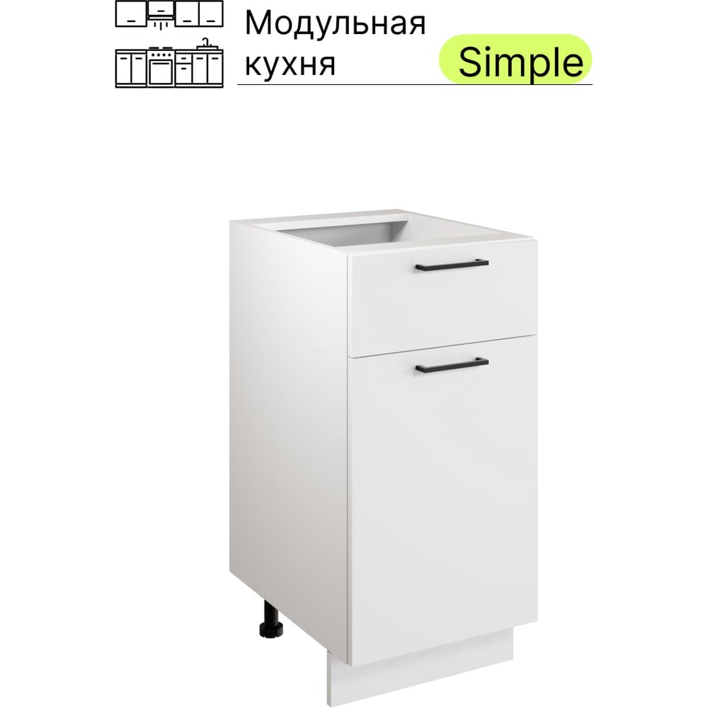 Шкаф - стол Атмосфера 40см с одним ящ. и с одной дв. Simple Н400-1Я Белый/ Белый