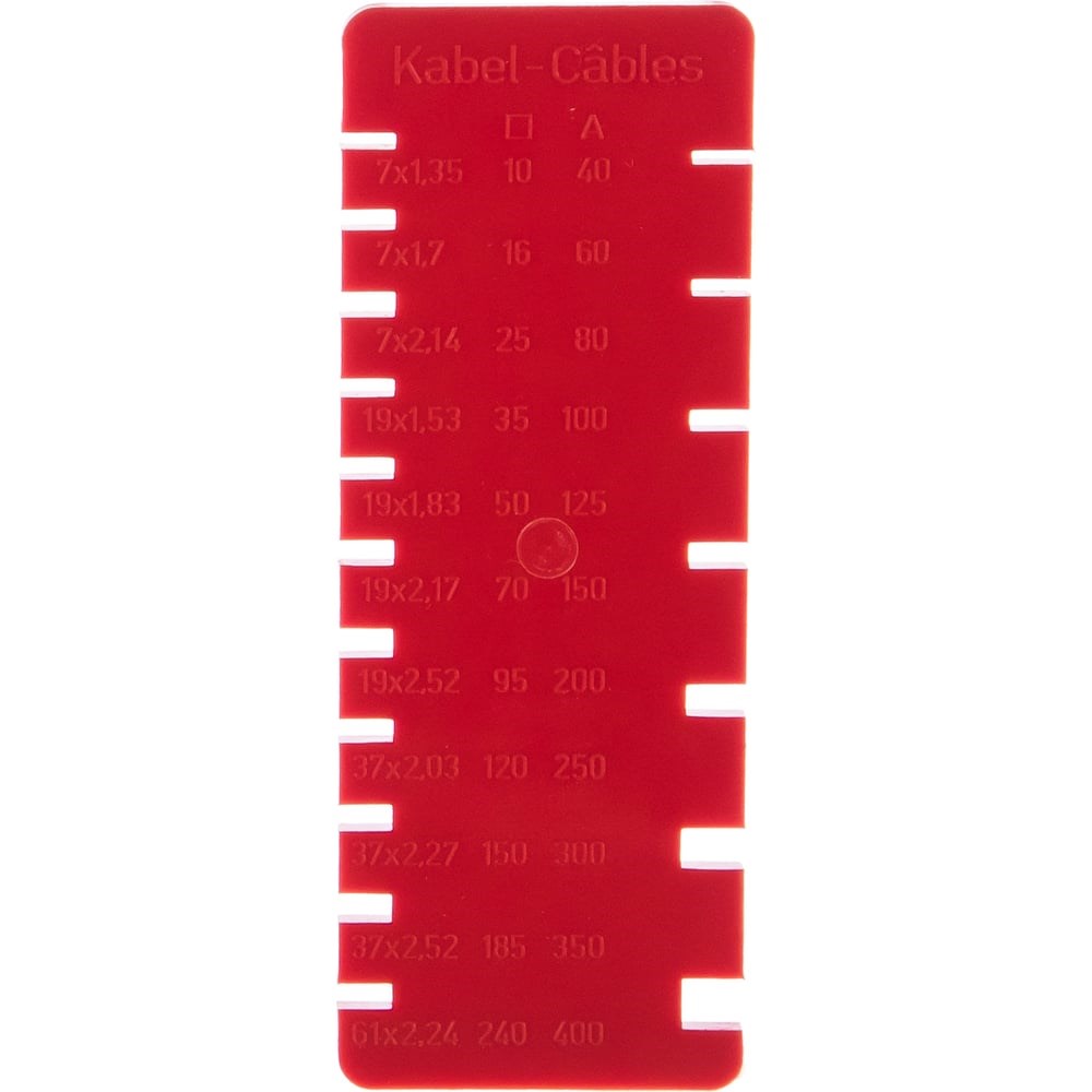 Шкала CIMCO 14 0120 предназначена для определения диаметра и сечения проводов и кабеля. Габариты инструмента 95х 35 х 3 мм.