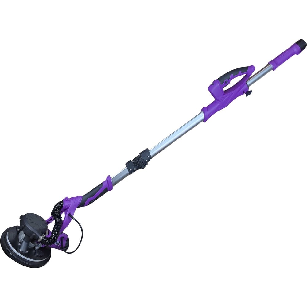 Шлифовальная машина "Жираф" ATe-S225FE с системой пылеудаления, оснащена турбиной с регулировкой вакуума и светодиодной подсветкой рабочей зоны. Плавная регулировка скорости вращения от 800 до 2300 об/мин. Предназначена для шлифования стен и потолков после нанесения раствора, а также для удаления старой краски, остатков от старых обоев. Мощность шлифовальной машины "Жираф"ATe-S225FЕ 1380Вт, что превышает в минимальные требования в 500Вт. Большая мощность двигателя положительно сказывается на ресурсе инструмента. Имеет два воздуховода. Съемный край контура защитного кожуха тарелки (шасси) позволяет увеличить эффективность и уменьшить ручной труд (обработка поверхности у стыков и углов на 4 см больше). Телескопическая рукоятка с регулировкой длины позволяет работать со стенами и потолком высотой до 3 метров стоя на полу. Конструкцией машинки также предусмотрено вращение «головы» в разные стороны с углом наклона до 120 градусов. Подошва машинки оснащена тарелкой с липучкой для быстрой смены шлифовальной бумаги.