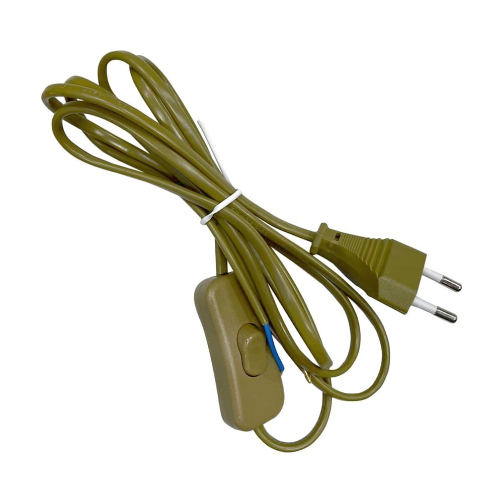 Внимание! Цвет товара может отличаться от представленного на фото. Оттенок цвета может быть темнее или светлее! Шнур типа ШВВП с проходным выключателем может быть использован для подключения различных осветительных приборов и бытовой техники к сети 220 В. Конструкция износоустойчивая, универсальная и простая в монтаже. Изделие имеет эргономичный клавишный выключатель. Длина провода - 1,8 метра. Цвет: золотой