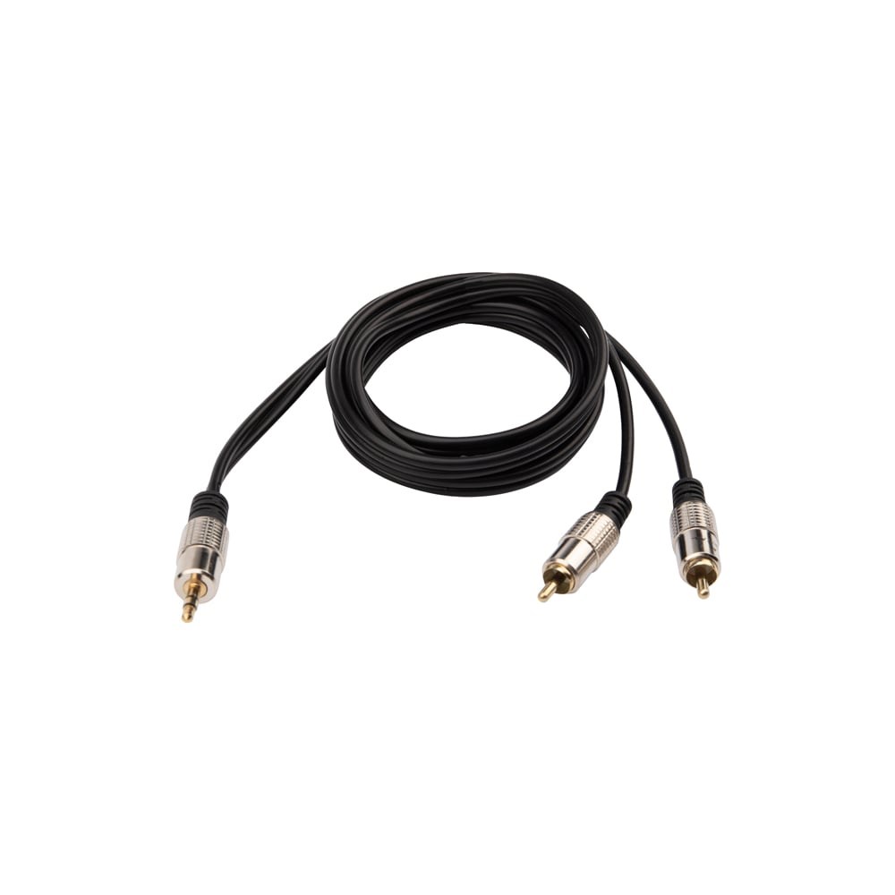 Шнур REXANT 1,5 м предназначен для передачи аналогового аудиосигнала и широко применяется для видео- и аудиосистем. Он используется для совместной эксплуатации домашней и профессиональной аудиоаппаратуры, такой как микрофоны, электронные музыкальные инструменты, плееры, усилители звука, телевизоры, видеоприставки и мобильные телефоны.Шнур имеет с одной стороны штекер разъёма 3,5 мм стерео, а с другой — два штекера разъёма RCA. Это позволяет разнести двухканальный звук (стерео) на две точки воспроизведения. Разъёмы выполнены из металла, а контакты штекеров покрыты слоем золота, что улучшает качество передачи сигнала.