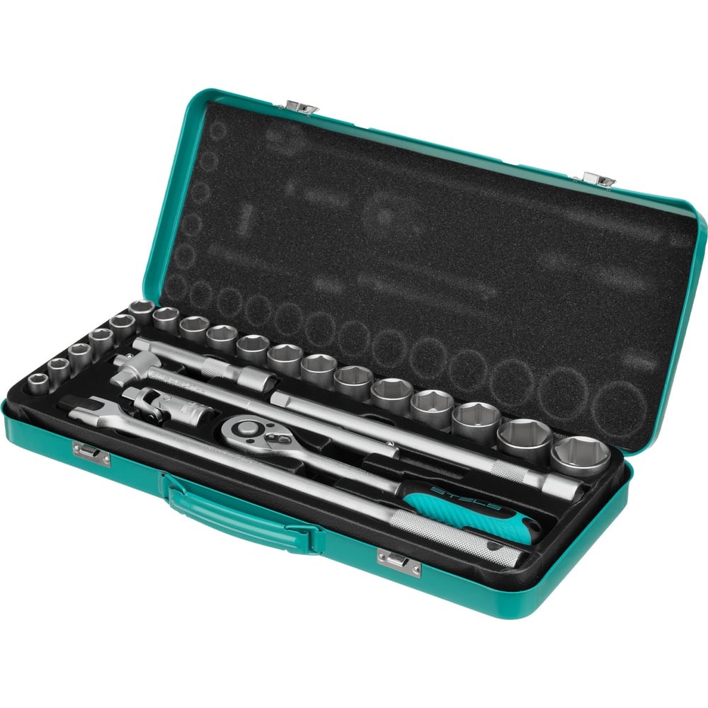 Набор шоферский с квадратом 1/2", 24 предмета STELS 13578 изготовлен специально для автолюбителей. В комплект входят: трещоточный ключ, торцевые головки, кардан, удлинитель, отвертка-держатель, а так же Т-образный и шарнирный воротки. Специальный металлический кейс устойчив к повреждениям при падении. Это обеспечивает удобное хранение и безопасную транспортировку данного набора. Трещоточный механизм имеет 72 зуба, шаг зуба составляет 5 градусов.