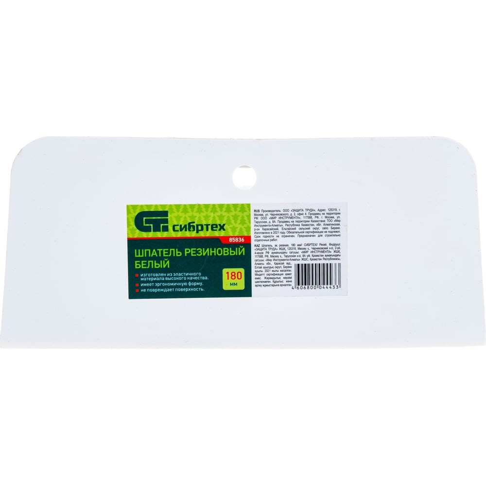 Шпатель из белой резины Сибртех 85836 шириной 180 мм предназначен для заполнения межплиточных швов затиркой. Благодаря светлой резиновой поверхности он не повреждает плитку, поэтому подходит для работы даже с эксклюзивными облицовочными материалами. За счет ширины 180 мм шпатель увеличивает производительность работ.