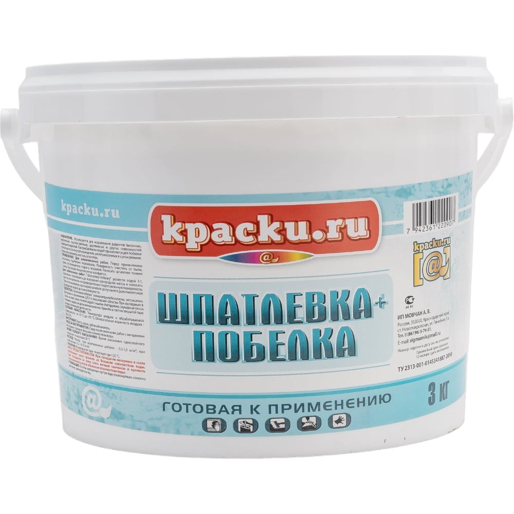 Шпатлевка + побелка Movatex Краски. ru 3 кг Т02358 используется для исправления дефектов бетонных, кирпичных, оштукатуренных, деревянных и других поверхностей перед их покраской. При разбавлении водой применяется для побелки потолков и стен внутри помещений, эксплуатируемых в сухом режиме. Наносится валиком, кистью, шпателем. Шпатлевку хранить при температуре выше 0 градусов, выдерживает не менее 5 циклов замораживания-оттаивания при температуре до минус 20 градусов. В случае замораживания оттаивать шпаклевку при комнатной температуре. Инструкция по применению: Для шпатлевочных работ перед применением состав тщательно перемешать. Поверхность очистить от пыли, грязи, отслоившегося старого покрытия. Наносить шпателем тонким слоем. Высохшее покрытие легко шлифуется. Для побелочных работ развести водой 1:1, тщательно перемешать до получения однородной массы и наносить кистью или валиком на предварительно подготовленную поверхность. При использовании краскораспылителя допускается дополнительное разведение водой до нужной вязкости. Рабочие инструменты после окончания работ промыть водой. Расход: шпатлевка 0.3 - 1 кг/кв.м; при побелочных работах 0.1 - 0.15 кг/кв.м. Гарантийный срок хранения 12 месяцев.