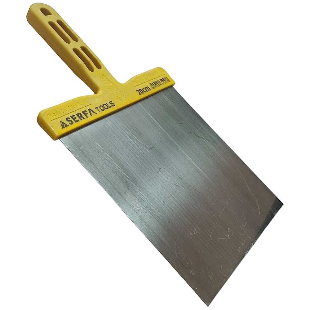 Шпатлевочная лопатка с пластиковой ручкой Serfa с полотном шириной 200 мм подходит для бытового и профессионального применения. Инструмент позволяет замешивать, наносить и разравнивать штукатурку и другие строительные растворы, заполнять швы, заделывать трещины и выполнять иные отделочные работы.