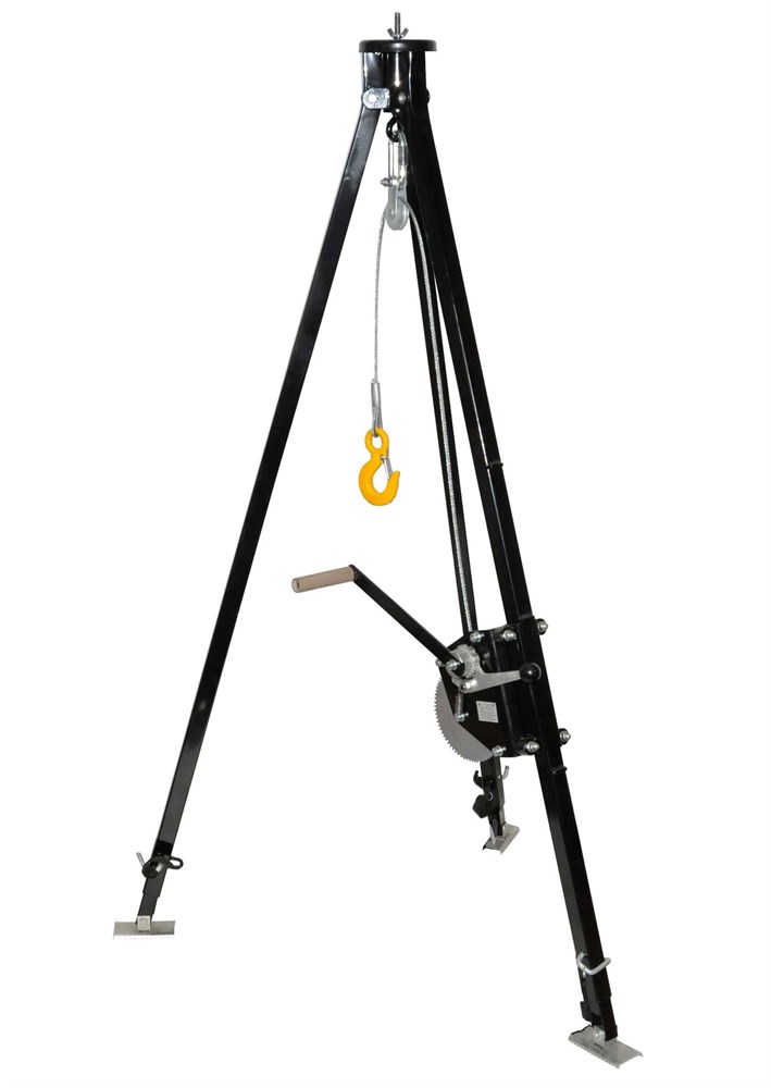 Штатив-тренога (трипод) – представляет собой переносной, временный элемент постоянной конструкции и служит для подъема, опускания и удержания лиц, работающих в канализационных колодцах, бассейнах, шахтах и других замкнутых пространствах. Трипод оборудован лебедкой, предназначенной для подъёма, опускания и удержания лиц, занятых при проведении работ.