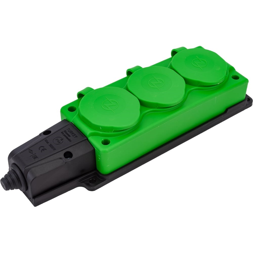 Штепсельная колодка NE-AD 3-гнезда с крышкой, с заземлением, 16А, IP54 (каучук), Зеленый 4133 предназначена для подключения электрооборудования и электроинструментов в сложных эксплуатационных условиях мощностью до 3,5 кВт. Штепсельные колодки из синтетического каучука успешно используются: В разных отраслях промышленности (для подключения электрических станков или проведения профессионального освещения). На стройплощадках (при прокладке временных кабельных линий и установки бытовок). В бытовых условиях (для электроснабжения торговых киосков, при организации выставочных площадей). В личных подсобных хозяйствах (для подключения электрооборудования и электроинструментов) и т.д. Изделие подходит для эксплуатации в суровых условиях - на открытом воздухе или во влажных или запыленных помещениях.