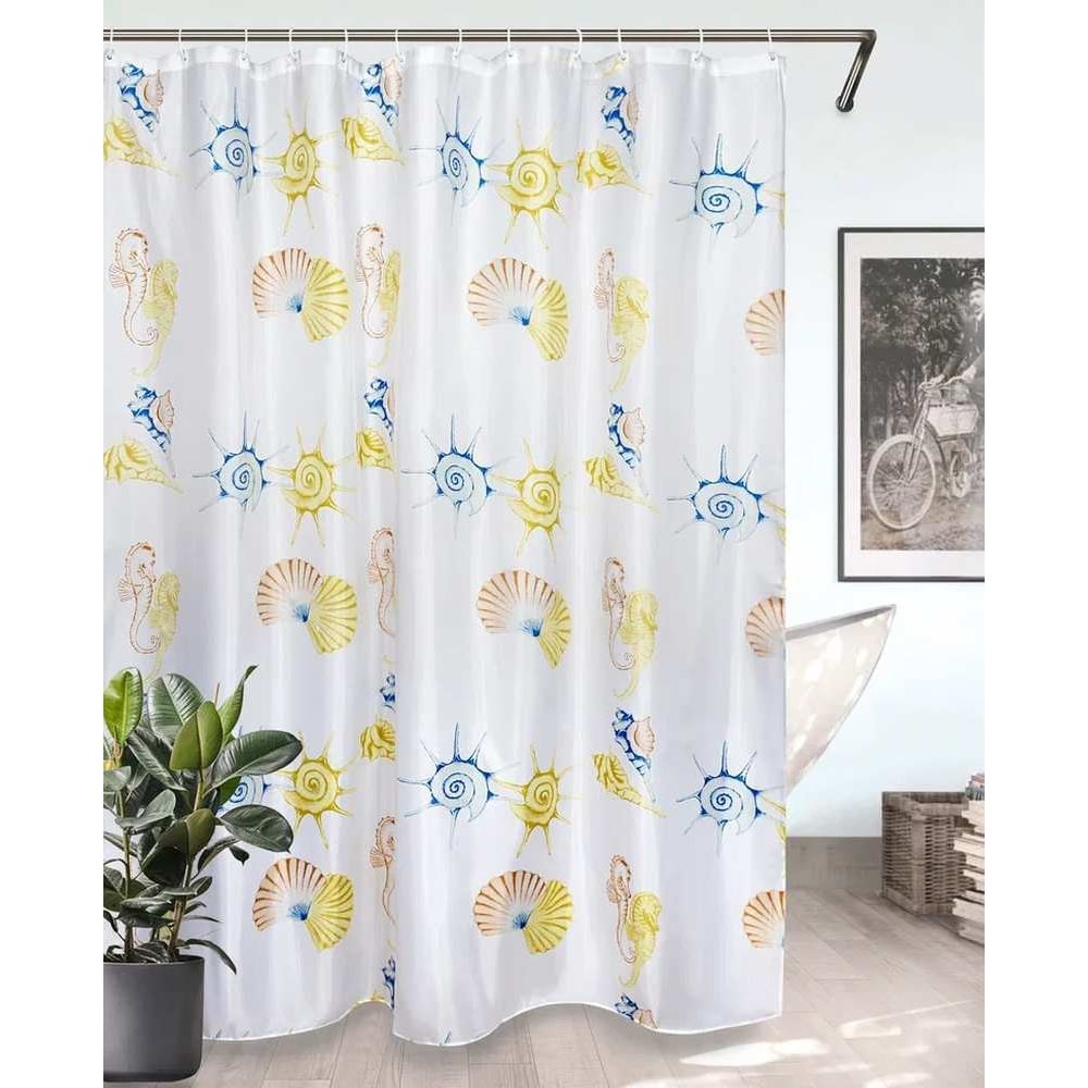 Штора для ванной комнаты Bath Plus 180х200/180x180 Scallop ch1351 изготовлена из 100% полиэстера с водоотталкивающей пропиткой.В нижний край вшит гибкий шнур, который поддерживает шторку в естественной расправленной форме.Плотность шторки - 90 г на кв.м.Изделие можно стирать в стиральной машине при 30 градусов С на деликатном режиме и гладить.Данная штора также прекрасно подойдет в качестве занавески для душевой кабины.