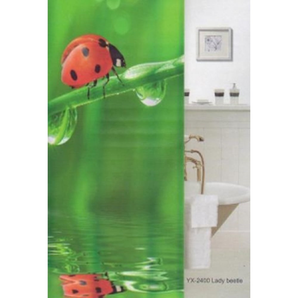 Штора для ванной Zalel Фотопринт 180*180 Lady beetle зеленая YX-2400 без колец 524842 тканевая, водонепроницаемая, в комплекте без колец. Утяжелитель - отсутствует. Обработка краев - термический шов. Люверсы - 12 штук, пластиковые.