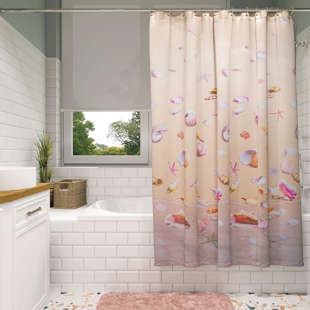 Оригинальная шторка для ванной «Морская фантазия» FORA станет отличным украшением современной ванной. Бежевое полотно с причудливыми розовыми и желтыми ракушками, морскими звездами и брызгами волн будет поднимать настроение всем членам семьи. Шторка «Морская фантазия» FORA сделана из высокопрочного полиэстера. Полотно обработано влагозащитным средством и специальным антибактериальным составом, который предотвращает размножение бактериальной микрофлоры и плесени. Шторка имеет длительный срок службы, ее цвета не тускнеют даже после множества стирок благодаря особой технологии нанесения рисунка.